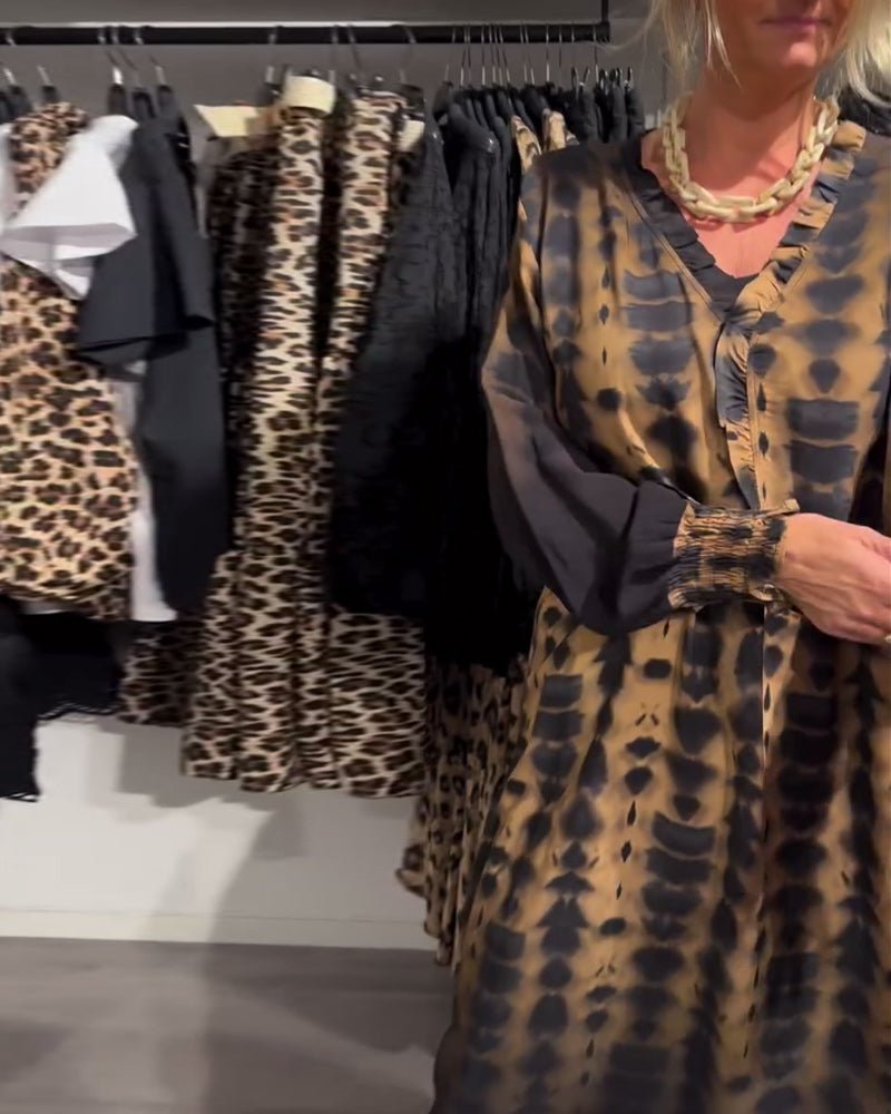 Designed for comfort and style, the Alice Gradient Dress effortlessly blends simplicity with sophistication. Its flowing silhouette and graceful V-neckline create a flattering look, perfect for both casual outings and elegant occasions. The soft cotton-blend fabric ensures all-day comfort, while the enchanting gradient print adds a touch of artistic charm.